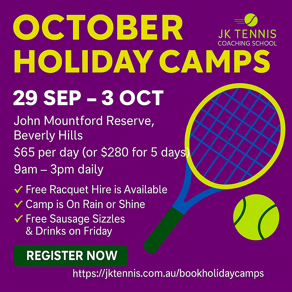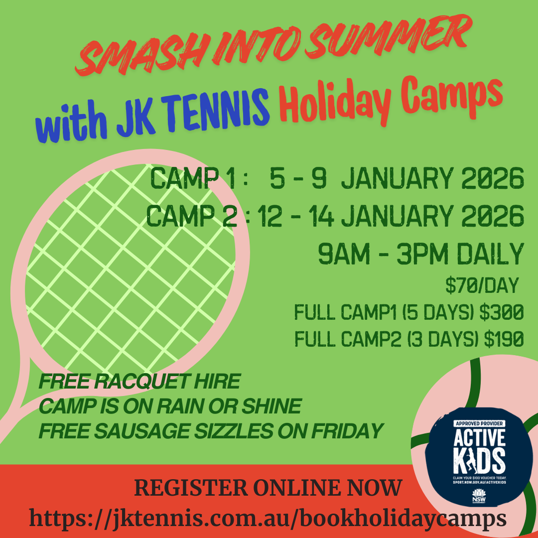 Keep your children active, have fun, develop gross motor skills and make new friends at JK Tennis School Holiday Camps!